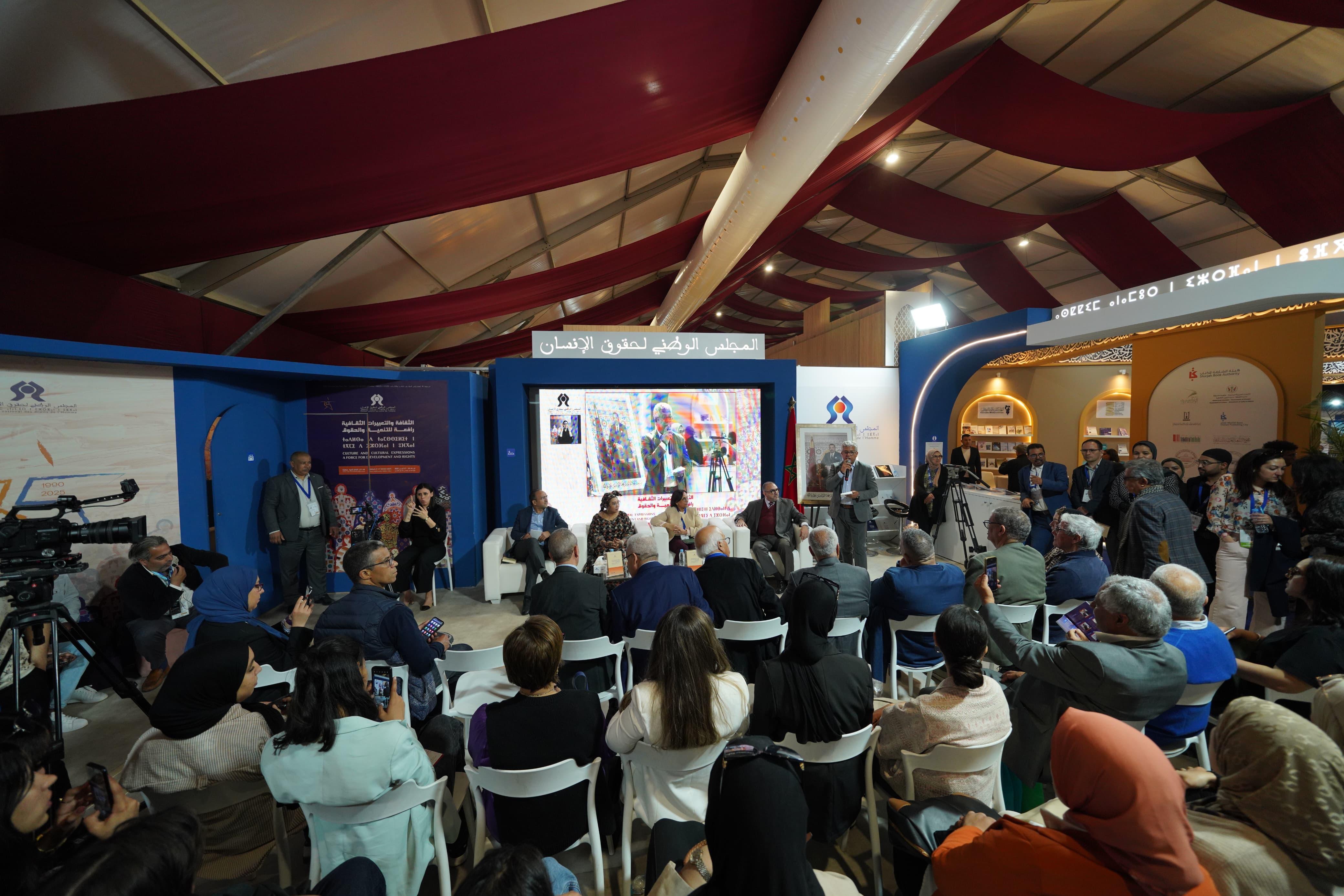 في ترافع متجدد لتجديد الالتزام الكوني بحقوق الانسان، احتضن رواق المجلس الوطني لحقوق الإنسان بالمعرض الدولي للنشر والكتاب يوم الخميس 24 أبريل لقاء فكريا حول موضوع "كونية حقوق الإنسان: فعلية تحققت أم مسار غير مكتمل"، تم خلاله تقديم مؤلف جماعي يعيد تركيب قضايا وأفكار تناولتها مناظرة دولية نظمها المجلس بمناسبة الذكرى 75 للإعلان العالمي لحقوق الإنسان، تميزت برسالة ملكية سامية، تأكدت معها مركزية هذا النقاش في الرؤية الحقوقية المغربية والرهان على فعلية كونية القيم في سياق دولي يشهد تراجعات مقلقة.
