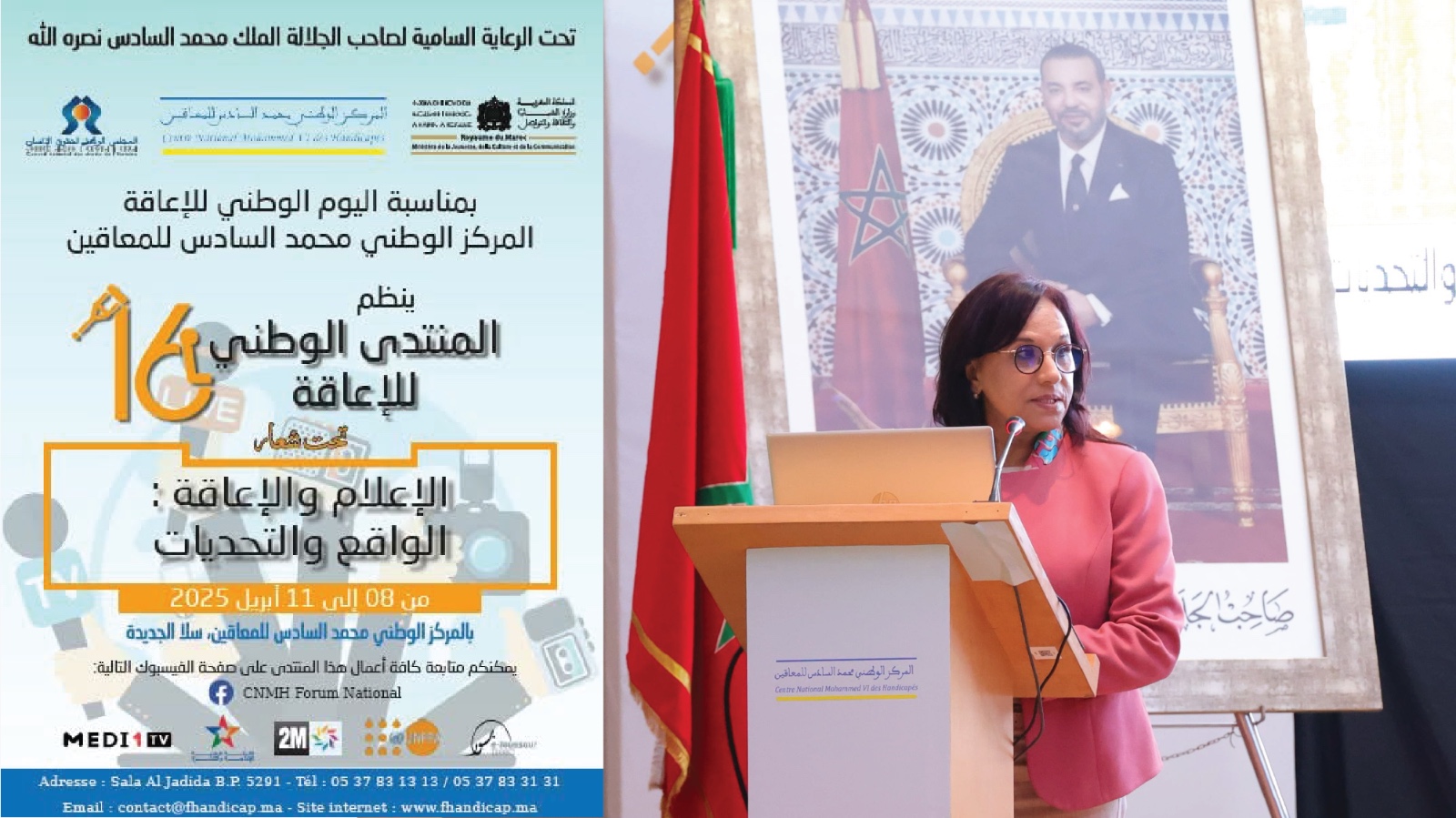 Salé, April 8, 2025 – Limited access to information, a lack of sign language interpretation, and the absence of audio description are among the key barriers undermining the effective realization of the rights of persons with disabilities (PWD) in Morocco. These were the central concerns raised by Ms. Amina Bouayach, Chairperson of the National Human Rights Council (CNDH), in her opening statement at the 16th National Disability Forum, held under the theme: “Media and Disability: Realities and Challenges.”