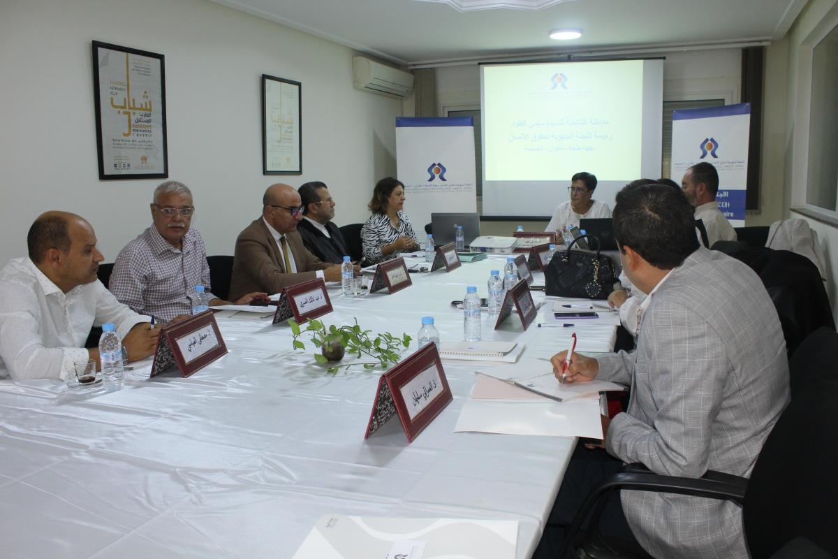 وفي كلمتها الافتتاحية، ذكرت رئيسة اللجنة، السيدة سلمى الطود، أن اللجنة تواصل متابعة مجموعة من القضايا الراهنة ذات الصلة بضمان الحق في التعليم للأطفال ضحايا النزاع الأسري وحماية حقوق الأشخاص المتواجدين بالمؤسسات الاستشفائية للأمراض العقلية والنفسية وبتشغيل الأشخاص في وضعية إعاقة وبقضايا مختلفة مرتبطة بالهجرة واللجوء، بالإضافة إلى معالجة بعض الإشكالات المتعلقة بملاحظة المحاكمات والاحتجاجات ومواكبة الانتهاكات ذات الصلة بالمقاولة وحقوق الإنسان، إلخ.