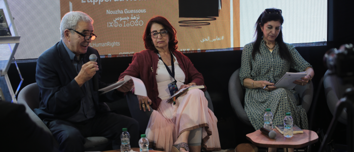 حلت السيدة نزهة جسوس، عضو المجلس الوطني لحقوق الإنسان، ضيفة فقرة "حديث عن كتاب" برواق المجلس الوطني لحقوق الإنسان بالمعرض الدولي للنشر والكتاب لتقديم كتابها "امرأة في بلاد الفقهاء: نداء الهدهد"، مساء السبت 4 يونيو 2022.