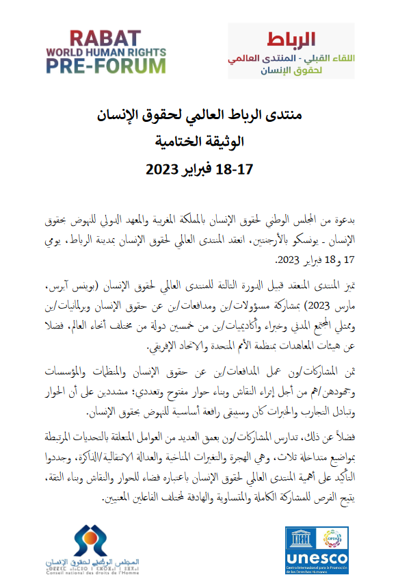 وشارك المجلس في مؤتمر الأطراف 27 بشرم الشيخ في مصر، وساهم في صياغة رسالة مفتوحة للتحالف العالمي للمؤسسات الوطنية لحقوق الإنسان موجهة إلى الدول الأطراف في اتفاقية الأمم المتحدة الإطارية بشأن تغير المناخ واتفاق باريس بهدف تعزيز العمل المناخي بما يتماشى مع التزاماتها في مجال حقوق الإنسان.
