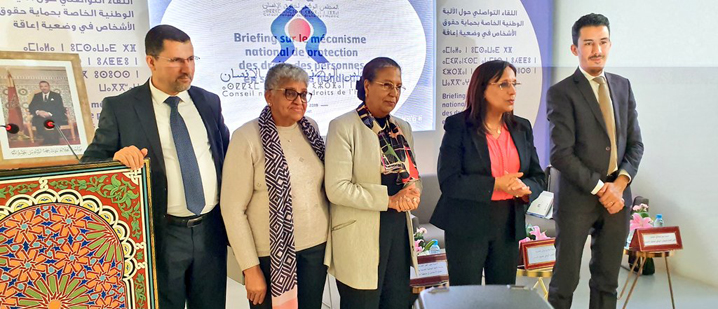 في نفس السياق، أبرزت رئيسة المجلس أن "التحول الذي عرفه المجلس الوطني لحقوق الإنسان من خلال احتضانه للآلية الوطنية الخاصة بحماية حقوق الأشخاص في وضعية إعاقة... يضع على عاتقه تحديات كبرى". وتتمثل هذه التحديات في التصدي للانتهاكات التي تمس حقوق الأشخاص في وضعية إعاقة، خاصة نزلاء أماكن سلب الحرية ومؤسسات الرعاية الاجتماعية ومستشفيات الصحة العقلية، وتعزيز تمرين ملائمة القوانين وإعمال السياسات العمومية ذات الصلة، ومتابعة تفعيل توصيات اللجان المعاهداتية والإجراءات الخاصة، كما تهم هذه التحديات كذلك التربية على المواطنة وحقوق الإنسان كمدخل أساسي لتربية الناشئة وإذكاء الوعي ومواكبة التحولات الاجتماعية والثقافية ومحاربة الصور النمطية ونبذ جميع أشكال التمييز المبني على الإعاقة.