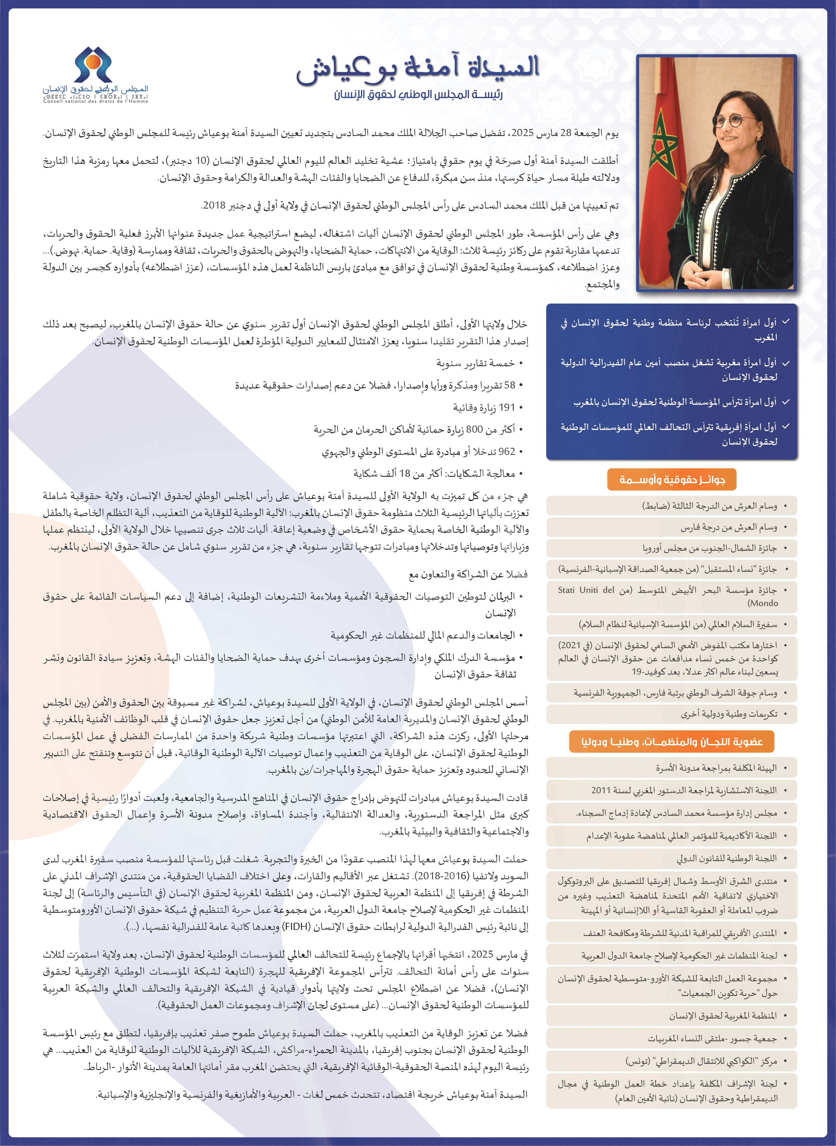 محطات في مسار السيدة آمنة بوعياش، التي تفضل جلالة الملك بتجديد تعيينها رئيسة للمجلس الوطني لحقوق الإنسان