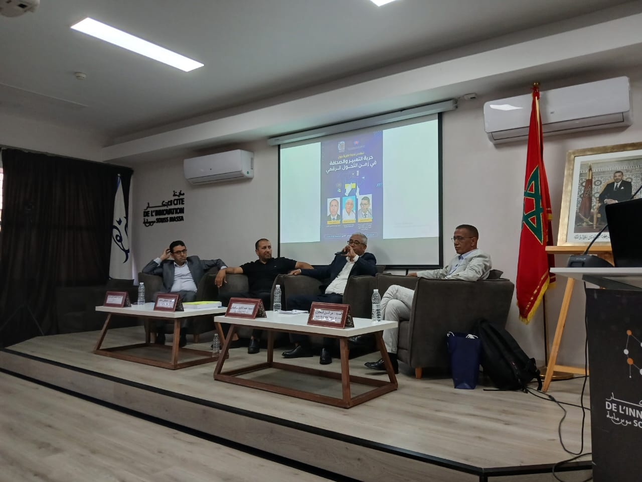 نظمت اللجنة الجهوية لحقوق الإنسان بجهة سوس-ماسة والفرع الجهوي للنقابة الوطنية للصحافة المغربية سوس-ماسة ندوة فكرية حول موضوع «حرية التعبير والصحافة في زمن التحول الرقمي"، يوم السبت 8 يونيو 2024 بقاعة العروض لمدينة الابتكار بأكادير.