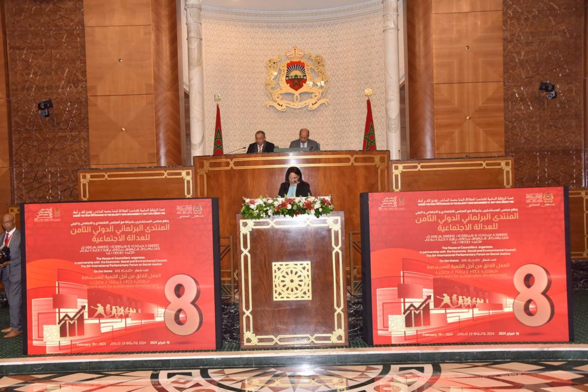 Ms. Amina Bouayach, Chairperson of the National Human Rights Council (CNDH), participated on Monday 19 February 2024, at the House of Councillors in Rabat, Morocco, in the opening of the 8th International Parliamentary Forum for Social Justice.