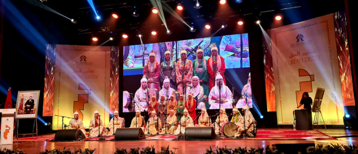 The Hymn performed exclusively by women of “Akhawat Alfan Al’Asil” (Sisters of Authentic Art for Hadra Chefchaounia) reflected the ability of Moroccan women to challenge cultural and social obstacles to exercise their right to expression by singing the original musical heritage distinguishing the Moroccan cultural identity. Those girls and women played and sang with melodious voices and received applause from the audience.
