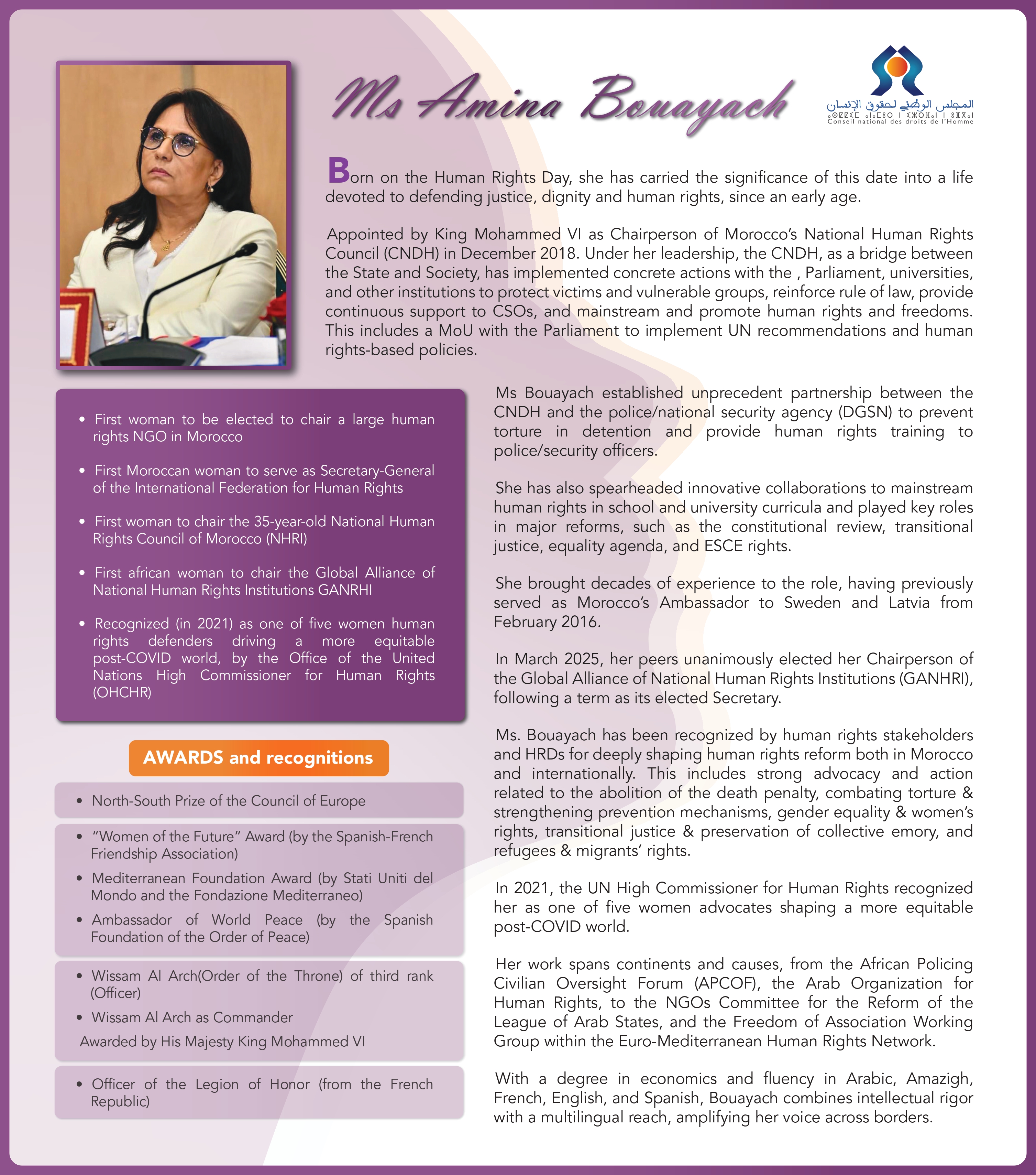 Key Milestones in Ms. Amina Bouayach's Journey- Reappointed by His Majesty as CNDH President