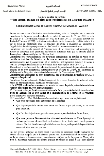 SUBMISSION OF THE REPORT OF CNDH MOROCCO TO THE…