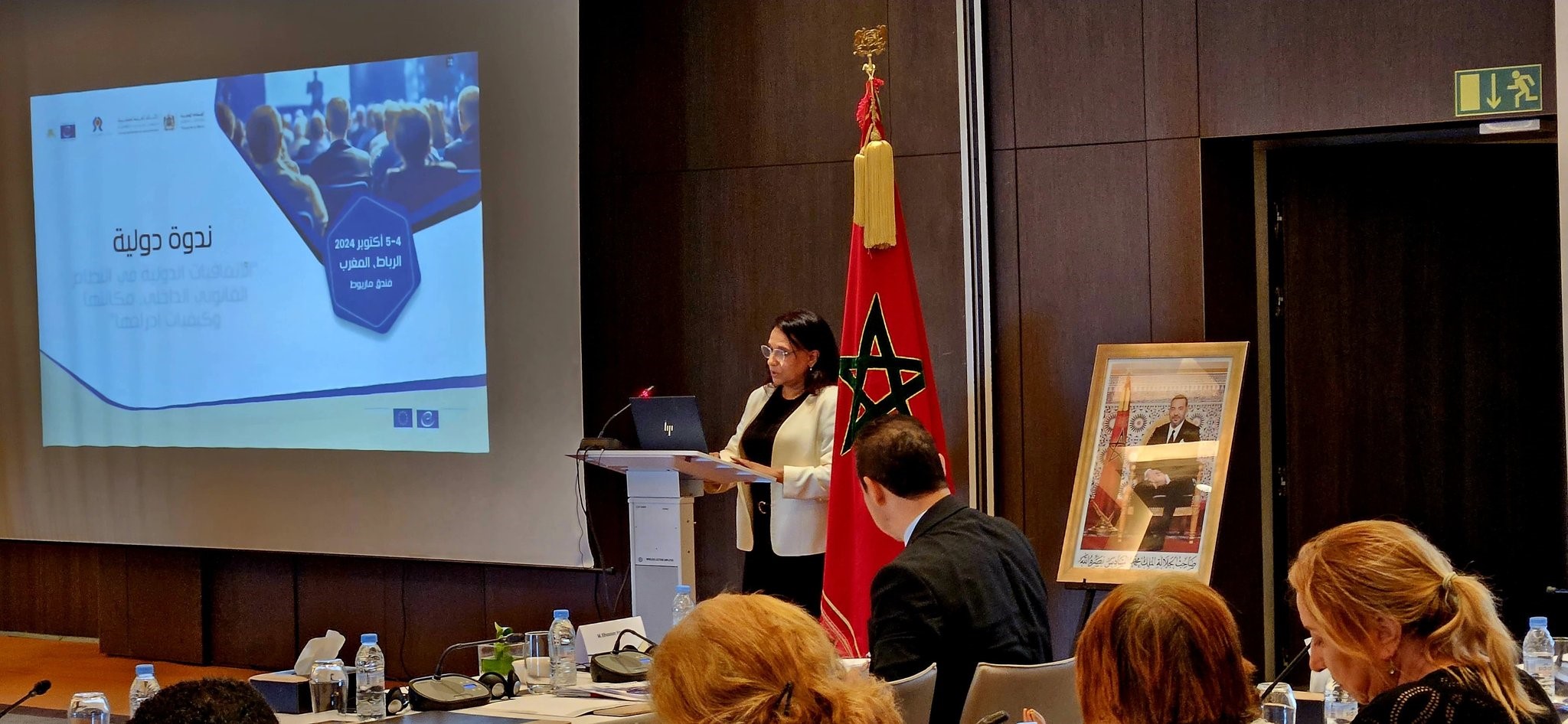 Mme Amina Bouayach, Présidente du Conseil national des droits de l'Homme (CNDH) a participé, vendredi 4 octobre 2024 à Rabat, à un colloque international sous le thème «Les conventions internationales dans l’ordre juridique interne, place et réception» organisé par le Secrétariat Général du Gouvernement et la Commission européenne pour la démocratie par le droit (Commission de Venise) du Conseil de l’Europe.
